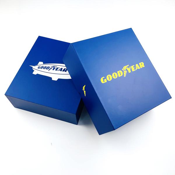 Custom Printed Dark blue Matte Rigid Paper Box lid and base Gift Box For Shoes Clothing brand packaging Images |
